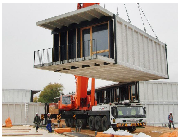 Изготавливаются модули на заводе, а затем доставляются на площадку и собираются в готовое здание — как "конструктор".